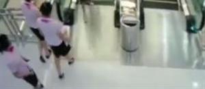 PEKÍN.- Una mujer logró salvar la vida de su hijo de dos años segundos antes de morir atrapada por una escalera mecánica de un centro comercial en China. La trágica escena quedó registrada por las cámaras de seguridad del shopping de Jingzhou, provincia central de Hubei.