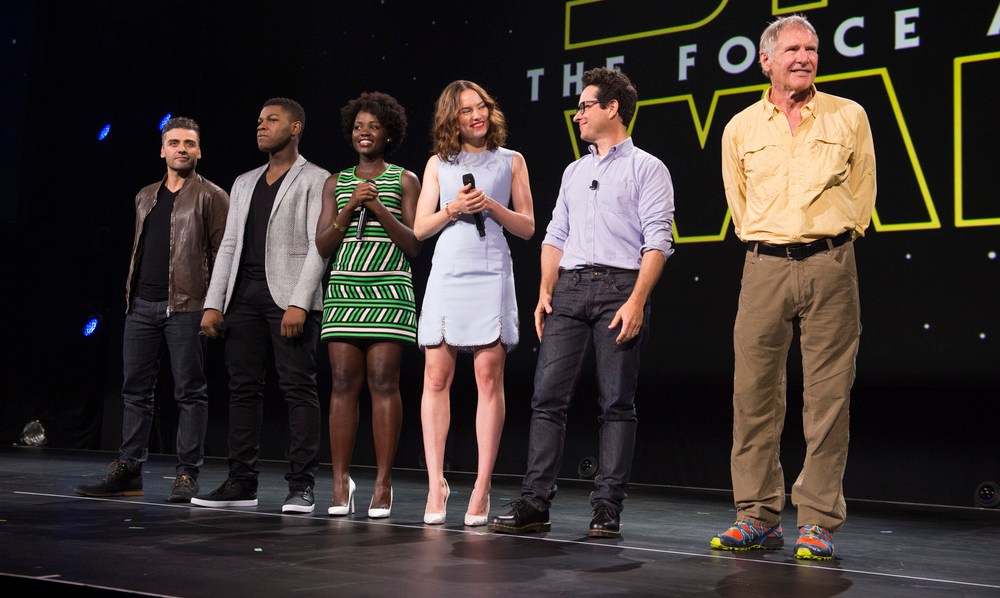 Para promocionar “Star Wars: Episode VII. The Force Awakens”, que se estrena en diciembre, el director J.J. Abrams se trajo a sus estrellas principales, entre ellas el actor guatemalteco Óscar Isaac y la actriz mexicano-keniata, Lupita Nyong’o, que quedaron relegados a un segundo plano cuando Ford, Han Solo en la saga, hizo acto de presencia, ya completamente recuperado de su accidente de avión.