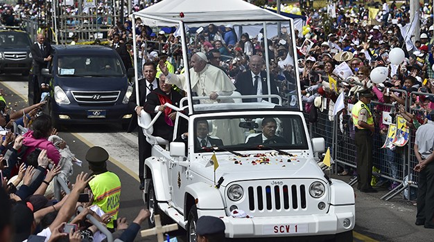 El Papa Francisco a bordo de su papamóvil durante su visita a Ecuador. Crédito: Suministrada