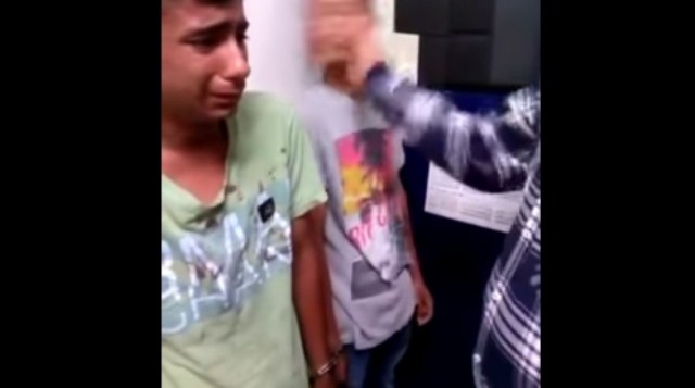 Uno de los menores llora mientras recibe los golpes. Al parecer se les culpa del robo de un celular. Hay señales de que antes del video fueron torturados porque la camisa está desgarrada y tiene tintura como de sangre.