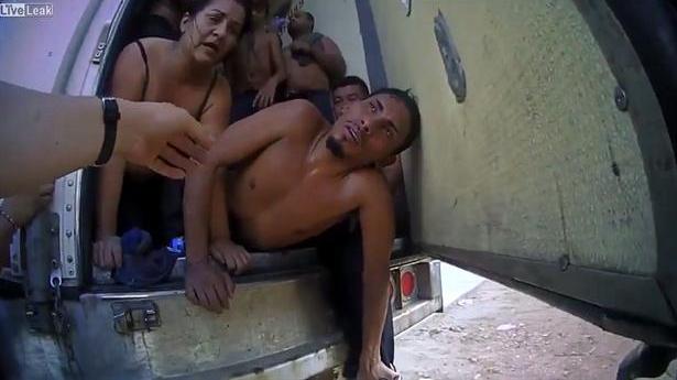La Policía del Condado de Frio en Texas filmó el momento en que intercepta un camión repleto de inmigrantes mexicanos que intentaban entrar sin papeles a Estados Unidos. En las imágenes se ven las condiciones en que estas personas se trasladas de un país a otro: ensimismadas, transpiradas, una encima de la otra, deshidratadas, con poca ropa, sin aire para respirar.