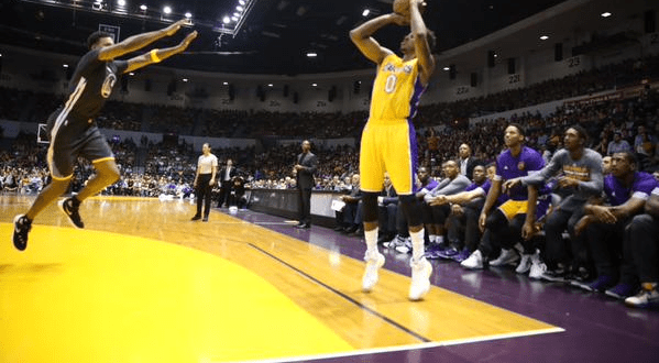 Nick Young en acción frente a los Warrios el sábado por la noche. Crédito: @Lakers
