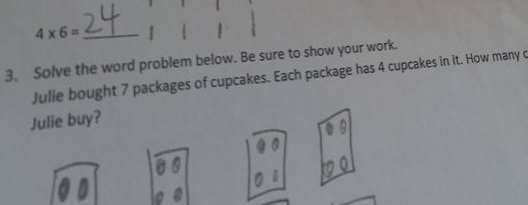 Luego, en el siguiente ejercicio en el que debía elaborar una matriz para mostrar cómo resuelve 4×6, el niño lo expresó en cuatro columnas de seis. Su maestra lo corrigió de nuevo escribiendo que debía haber puesto seis columnas de cuatro.
