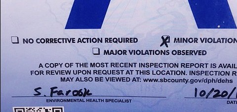 “S. Farook” escribía en las inspecciones de salubridad que realizaba en restaurantes y cocinas de San Bernardino, que ahora han empezado a retirar.