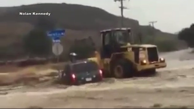 El dramático rescate de dos mujeres, al quedar atrapadas en su camioneta inundada en Castaic, fue captado en video y en cuestión de horas se ha viralizado. Y no es por lo recurrente que se ha convertido la escena ante la llegada de las lluvias de El Niño, sino por el transporte inusual en el que llegó su salvador: un tractor.