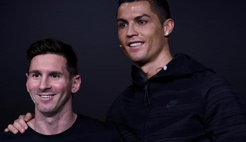 Messi y Cristiano posan durante la conferencia previa a la entrega del Balón de Oro. Crédito: EFE