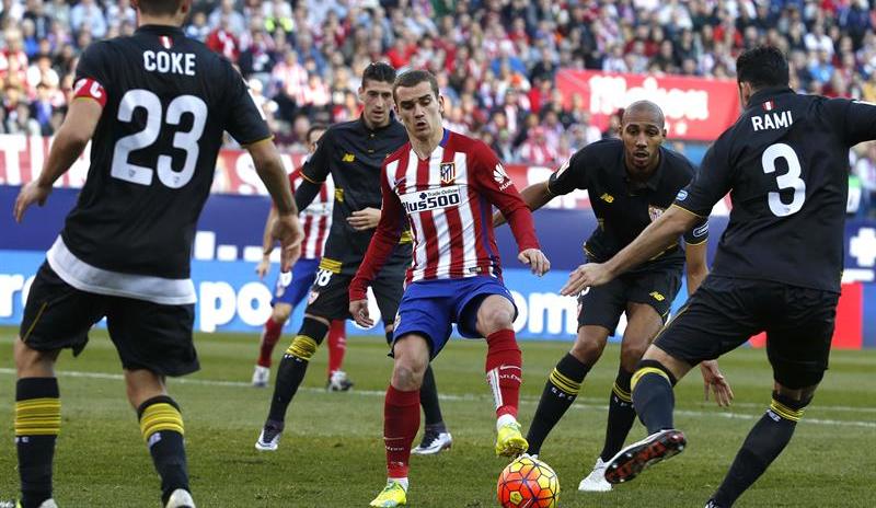 Presionado por el Barcelona, ganador un día antes en La Rosaleda, el Atlético encaró un partido de extrema incomodidad, el que le planteó el sistema defensivo del Sevilla, muy medido desde la táctica y desde la estrategia de Unai Emery, ideado desde la premisa de que sus opciones pasaban por su fortaleza en la retaguardia.