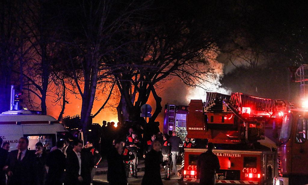 Bomberos intentan apagar el fuego provocado por la explosión ocurrida en Ankara, Turquía. Crédito: Defne Karadeniz | Getty Images
