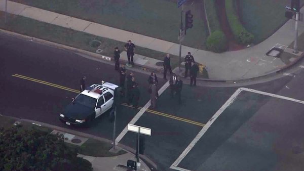 Agentes del LAPD resguardaban la zona donde se suscito el ataque contra un agente encubierto de esa corporacion. Crédito: Captura | KTLA