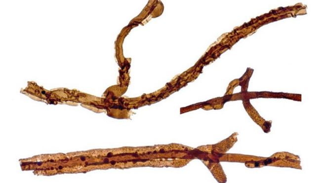 Pero este microfósil es más delgado que un cabello humano y su estructura –como de cuerda– es parecida a la de hongos que vemos hoy en día.