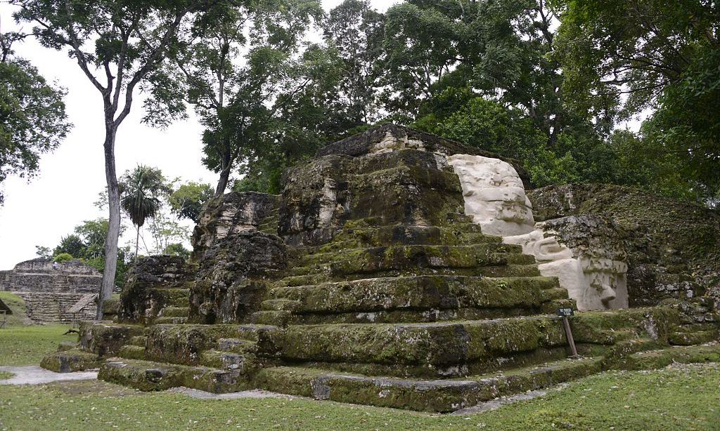 El Templo de las Máscaras en el sitio arqueológico Uaxactún, municipio Uaxactún, departamento de Petén, unos 570 km al norte de Ciudad de Guatemala, en la frontera con México y Belice. Crédito: Archivo/Johan Ordonez/AFP | Getty Images