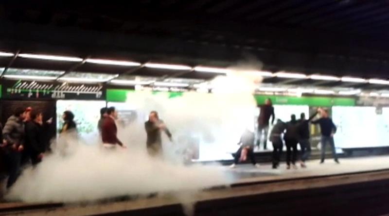 El primer acto vandálico se produjo sobre las 19:15 horas en la estación de Liceu, donde un grupo de fanáticos de los “Gunners” intentó colarse, se enfrentó al personal del metro y causó alborotos y molestias a los pasajeros antes de coger un extintor y vaciar su contenido por el andén.