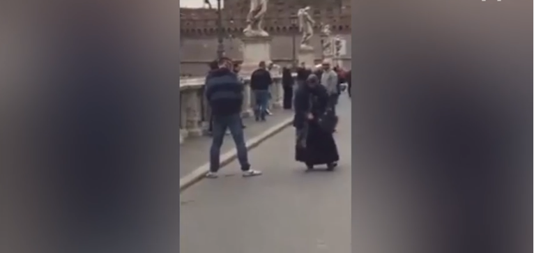 La víctima de este desadaptado fue una mujer mayor que se encontraba pidiendo limosna cerca del famoso puente de Sant’Angelo en la capital italiana.