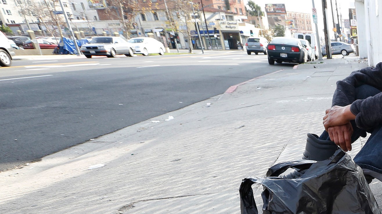 01/20/16 / LOS ANGELES/Homeless sit next to an encampment near Wilshire and Hoover in Los Angeles. A growing number of displaced people are spreading out from downtown Los Angeles in an effort to escape the violence of skid row. (Photo by Aurelia Ventura/La Opinion) Crédito: Aurelia Ventura | Impremedia/La Opinion