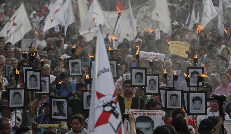 Hispanos lanzan campaña desde EEUU a favor de presos políticos en México. Aquí en esta foto, familiares y simpatizantes de los 43 normalistas desaparecidos de Ayotzinapa Guerrero marchan en Ciudad de México tras cumplirse 19 meses de su desaparición. Crédito: EFE/Archivo
