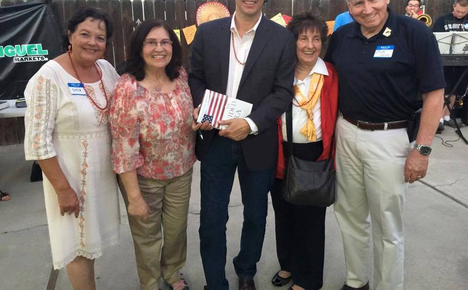 El precandidato al senado federal Tom Del Beccaro, con algunos partidarios en celebraciones del Cinco de Mayo. Para candidatos republicanos como él, se hace cuesta arriba ser competitivos en California y hay mucho trabajo por hacer para ser tomados en serio por los votantes latinos. Crédito: Suministrada