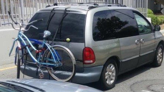 El conductor de esa camioneta Dodge Caravan color plateada es sospechoso de dar puñetazos y golpear a un pequeño perro contra la banqueta hasta matarlo. Crédito: Cortesia | Policía de Los Ángeles