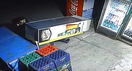 Video: Intentaba robar cervezas y le cae refrigerador encima