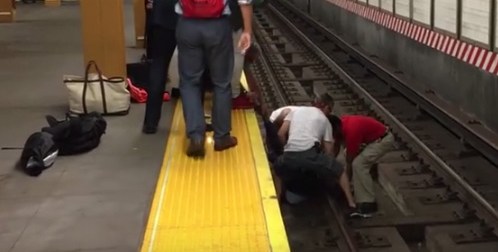 Un grupo de neoyorquinos arriesgó su vida para salvar la de un pasajero que cayó en los rieles de una estación del subway en el Bajo Manhattan.