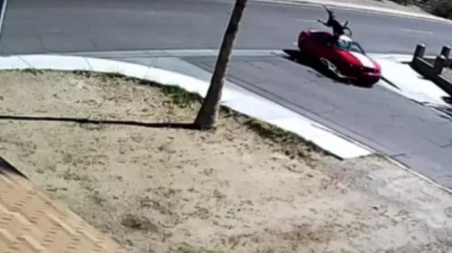 Wilke se metió a su Mustang, saltó una curva y manejó por el parque mientras su pareja circulaba en una bicicleta. Al cruzar Hatcher Road, la mujer impactó a Valva, quien cayó al suelo luego de dar varios giros en el aire.