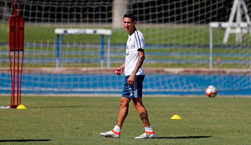 Durante el tiempo en el que la prensa pudo seguir el entrenamiento de esta mañana, Di María se mostró pleno en las acciones de toque de balón y luego en un partidillo informal con un grupo de jugadores jóvenes locales.