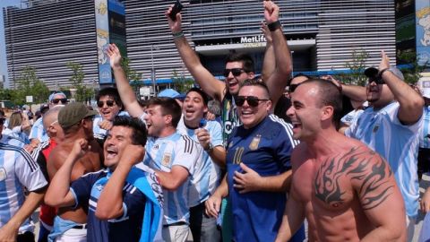 Aficionados argentinos alientan en las afueras del MetLife tadium. Crédito: EFE