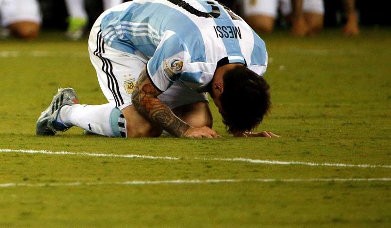 Lionel Messi se lamenta tras fallar su penal en la final frente a Chile. Crédito: EFE