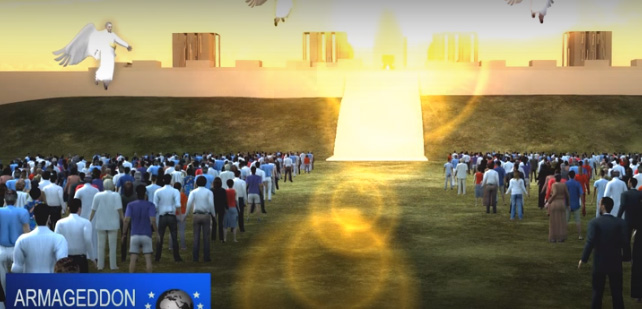 El mensaje viene acompañado de imágenes apoteósicas, como llamas de fuegos cayendo sobre un cementerio, una ciudad envuelta en sombras y polvo, y Jesús en lo que parece ser el “juicio final” de acuerdo con la fe cristiana.