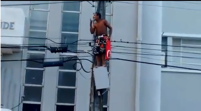 El sujeto se subió a los postes de luz. Crédito: Imagen tomada de video