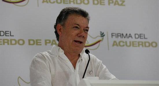 El presidente de Colombia, Juan Manuel Santos, firmará este lunes el acuerdo de paz pactado entre el gobierno y los líderes de las FARC. Crédito: EFE