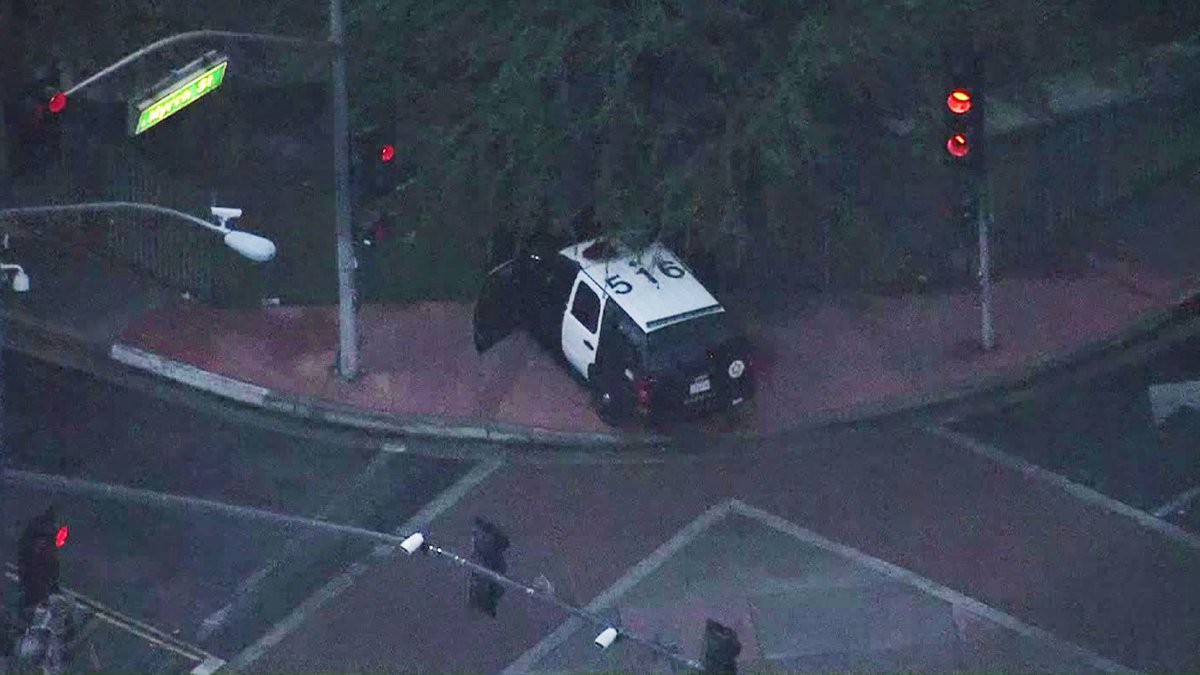 El agente falleció en el hospital después de haber sufrido lo que parece una emergencia médica. (Foto: Captura/KTLA) Crédito: Captura | KTLA