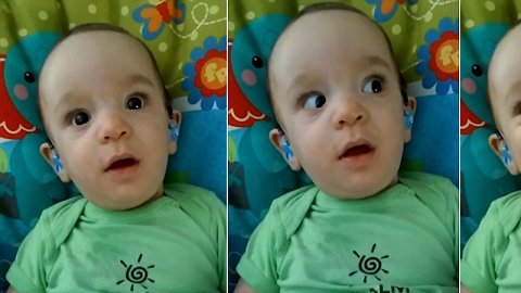Las expresiones de este bebé cuando escucha por primera vez. Crédito: Youtube ScreenShoot