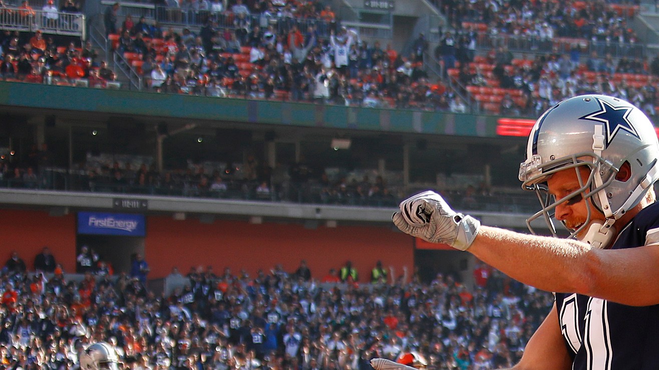 Cole Beasley celebra una recepción de touchdown durante el triunfo de los Cowboys en Cleveland. Crédito: Getty Images