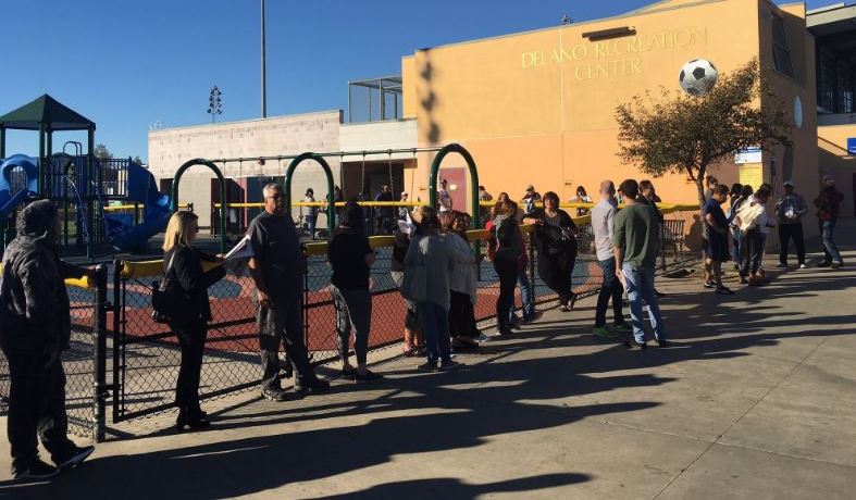 En el centro recreacional Delano, en Van Nuys, ya ha pasado una hora y media desde que tenía que estar en función la casilla, pero sin máquinas para votar, la gente esperando en fila comenzó a denunciar por medio de Twitter.