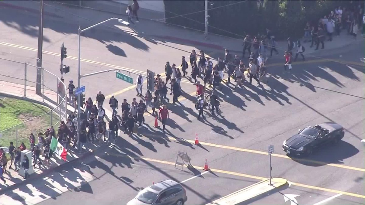 Decenas de estudiantes han vuelto a abandonar las aulas para mostrar su descontento con el resultado de las elecciones. Crédito: KTLA/Twitter