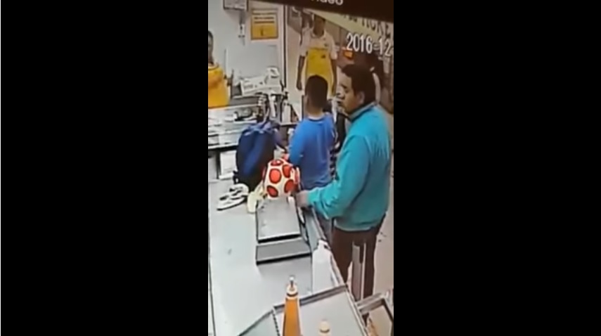 Una cámara de seguridad dentro de un mercado captó el momento exacto cuando un joven se guarda este objeto en su mochila