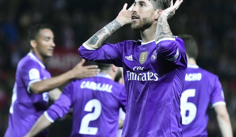 Sergio Ramos marcó el 3-2 ante Sevilla en el juego de vuelta de octavos de final de la Copa del Rey. Y lo hizo a lo Panenka en un penalti, y celebró mostrando su dorsal a los ultras del Sevilla, que le silban cada partido desde que se marchó al Real Madrid, y con gestos de perdón para el resto de la grada.