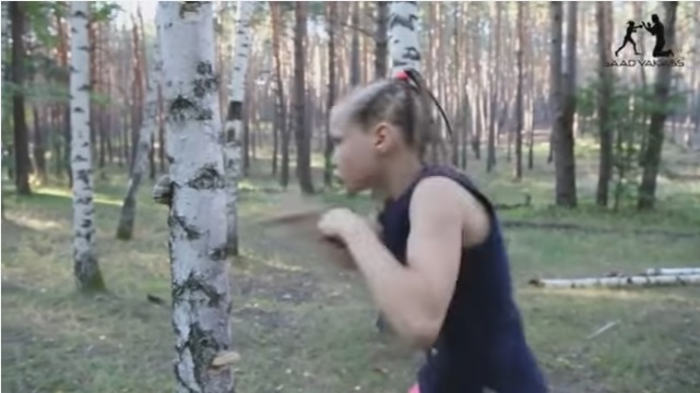 Se llama Evnika Saadvakass y es entrenada por su padre todos los días, para ir mejorando su técnica y su velocidad. Pero hay una peculiaridad en su rutina cotidiana: la pequeña boxeadora golpea con fuerza árboles y puertas hasta destruirlos.
