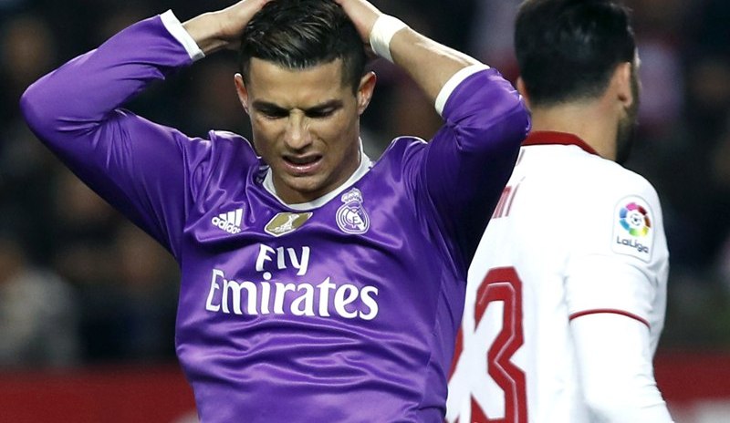 Cristiano Ronaldo no tuvo un día tranquilo en el Sánchez Pizjuán. Crédito: EFE