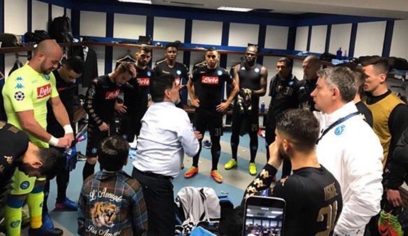 Maradona dio la charla al Napoli antes de saltar a la cancha del Bernabéu