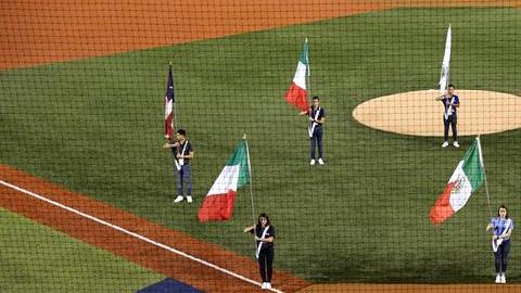 Después de este acto, fue cuando se vivió una total confusión en el terreno. Los peloteros mexicanos saltaron al campo sin ser presentados, mientras que con Italia sí presentaron hombre por hombre. México regresó al dugout para ahora sí salir con presentaciones individuales.