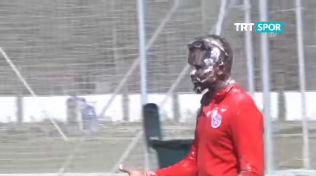 Previo al entrenamiento del equipo turco Antalyaspor, los compañeros de Eto’o decidieron y el cuerpo técnico decidieron llevarle un pastel al delantero. Todo iba bien, era un encuentro de camaradería, hasta que a uno de los jugadores se le ocurrió la idea de embarrarle el pastel en el rostro al cumpleañero.