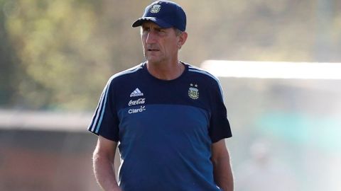 Edgardo Bauza es el único miembro de la selección argentina que atiende a la prensa. Crédito: David Fernández | EFE