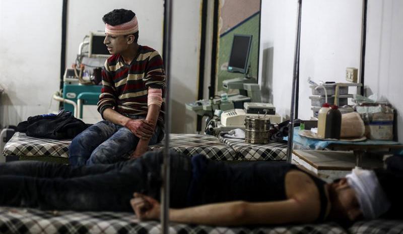 Un hombre herido recibe tratamiento médico en un hospital de campaña en Siria. Crédito: MOHAMMED BADRA | EFE