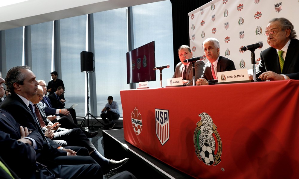 Decio de María estuvo presente en el anuncio, junto con los presidentes de las Federaciones de Estados Unidos y Canadá. Crédito: EFE