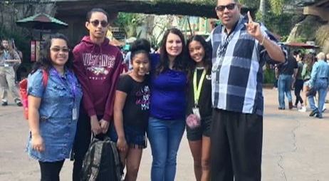 Krista Brian en Orlando con su padre, Andrew Baker, y sus cuatro nuevos hermanos Crédito: Cortesía de la Familia Baker