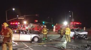 La colisión tomó lugar poco antes de la 1:30 de la madrugada del lunes en el bulevar Topanga Canyon y la carretera Santa Susana Pass.