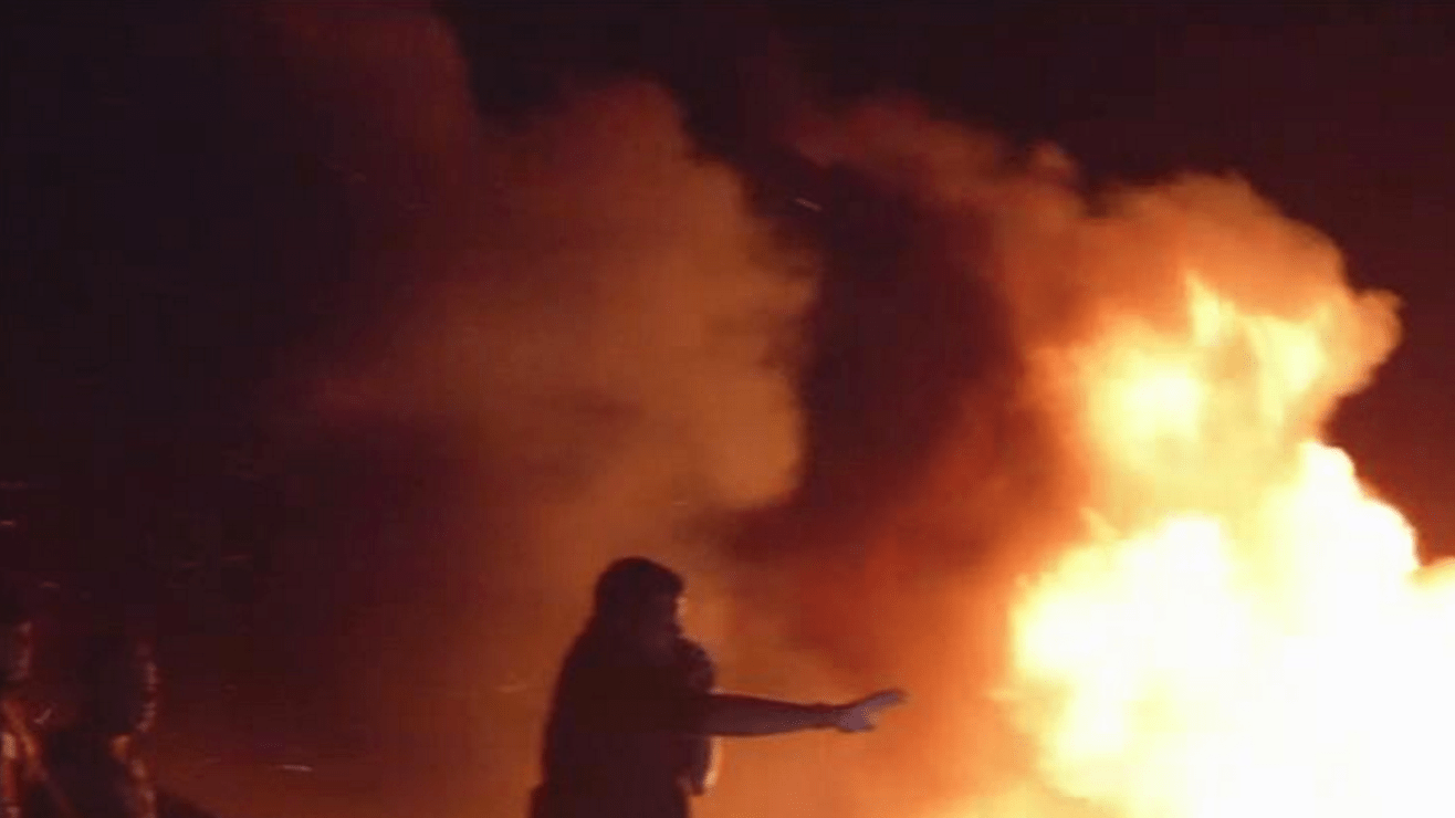 Después de que la mujer fue golpeada, dijeron las autoridades, un Kia Soul de 2014 se estrelló contra la motocicleta, provocando un incendio.