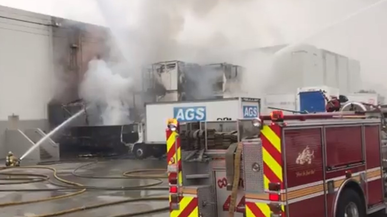 Se reportó el siniestro a eso de las 5 a.m., en la base de la empresa Portable On Demand Storage, ubicada en el bloque 200 de la calle Manville, bastante cerca de la autopista 91, informó el Departamento de Bomberos de Compton.