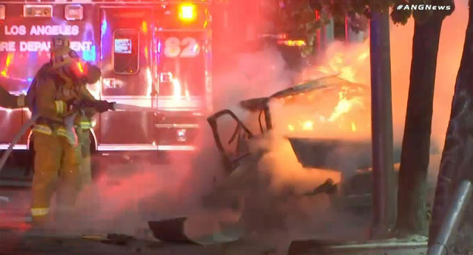 La policía y las unidades de bomberos trabajaron rápidamente para sacarlos del coche, pero el conductor y el pasajero murieron en el lugar, informó el LAPD.